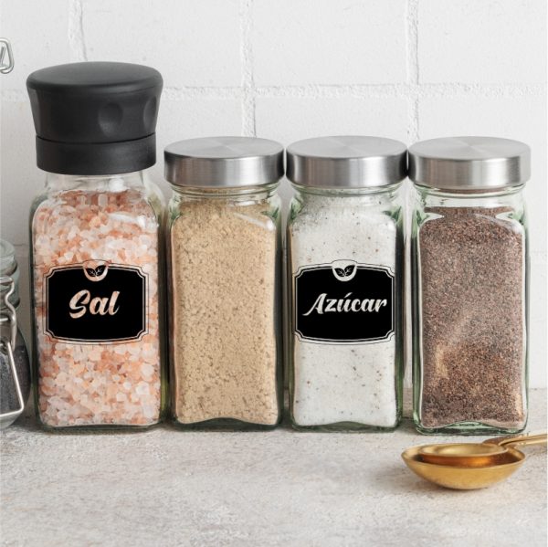 Vinil adhesivo de alto contacto para señalizar los condimentos de tu cocina, excelente para cualquier tipo de superficie, material etc. Colocarlo es bastante sencillo, para conocer el proceso de aplicación visita nuestro canal de Youtube «NanCrearte».